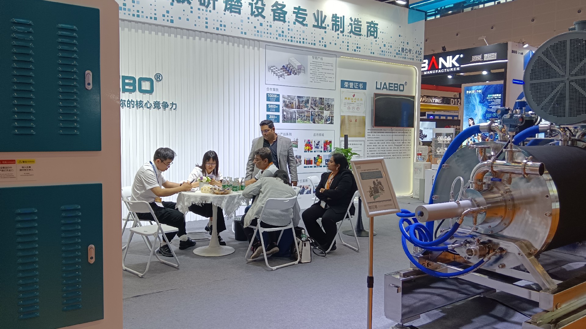 展會(huì)期間,勵(lì)岸寶科技在4號(hào)館A15展位展示了砂磨機(jī)在紡織染料、功能性顏料等領(lǐng)域的實(shí)際應(yīng)用案例,并通過現(xiàn)場(chǎng)演示與技術(shù)講解,向客戶傳遞“高效、環(huán)保、智能”的產(chǎn)品理念。公司團(tuán)隊(duì)與參會(huì)嘉賓深入探討行業(yè)趨勢(shì),共謀合作新機(jī)遇。