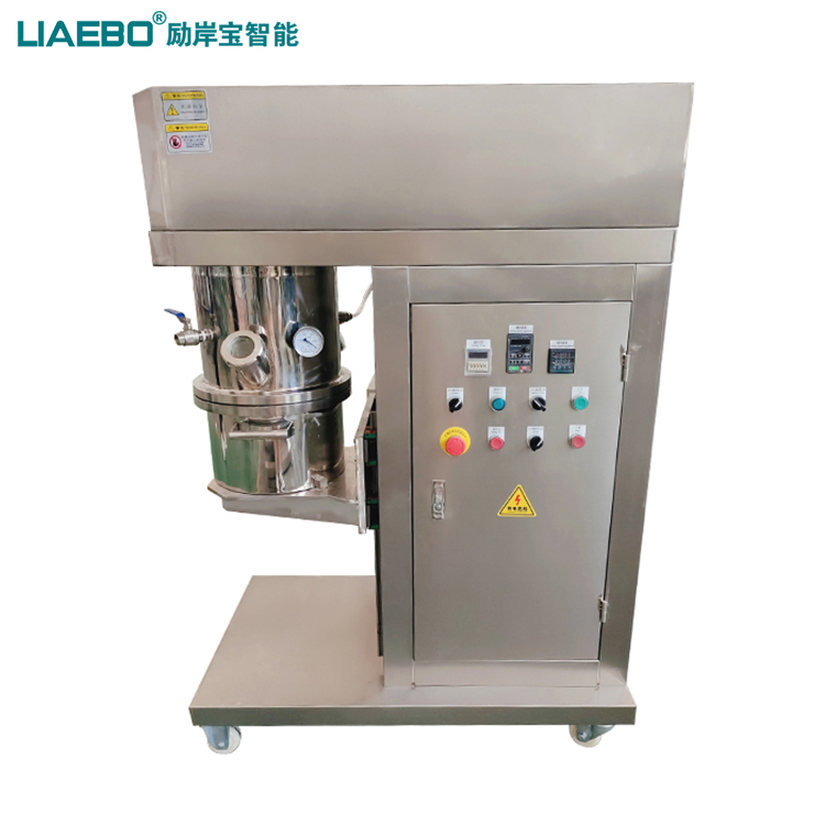 雙行星真空攪拌機(jī)是一種高性能、高效率、易清洗維護(hù)的新型攪拌設(shè)備。主要由減速電機(jī)、行星架、攪拌器、分散器、刮壁器、料桶、升降系統(tǒng)、液壓擠出系統(tǒng)以及機(jī)架等構(gòu)成,設(shè)備的雙組攪拌器運(yùn)行時自轉(zhuǎn)同時繞著軸心進(jìn)行公轉(zhuǎn),攪拌器形式根據(jù)物料粘度和工藝特性選配,常見的包括漿葉式、麻花式、爪式、框式等,具備良好的混合、反應(yīng)、捏合、溶解的作用;高速分散器由多層具備極高線速度的鋸齒狀分散盤組成,它同樣在高速自轉(zhuǎn)的同時繞著軸心進(jìn)行公轉(zhuǎn),能夠?qū)⒎哿?助劑)快速的分散到漿料里,具備很強(qiáng)的分散作用。設(shè)備配有一組獨立刮刀,對桶壁進(jìn)行不斷的刮拭,同時攪拌漿葉可以增加刮片,對料桶底部進(jìn)行刮拭,避免攪拌死角,確保產(chǎn)品的穩(wěn)定性;雙行星真空攪拌機(jī)傳動采用行星齒輪傳動,有較大的輸出扭矩,適用干高溫、高固,高粘度等高難度工況;該設(shè)備采用密閉式設(shè)計,可以配合真空系統(tǒng),實現(xiàn)真空攪拌,攪拌桶也可設(shè)計帶夾套加熱,配合模溫機(jī),實現(xiàn)恒溫攪拌功能,是市場上針對高粘度物料的分散、攪拌設(shè)備。