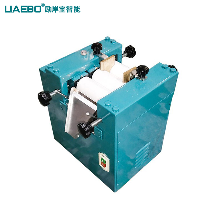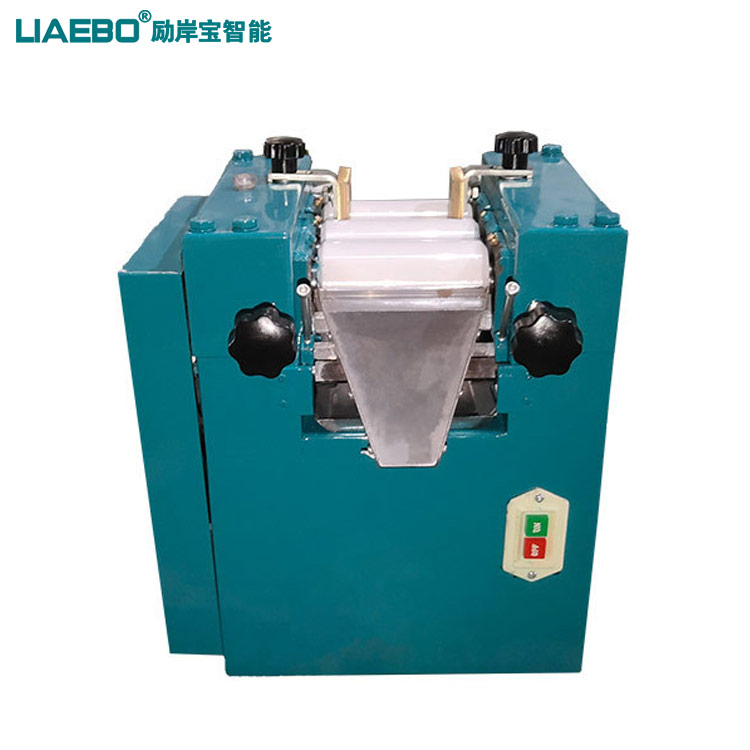 小型三輥研磨機適用于需要分散而細度要求較高的膏體或高粘度物料使用;通過水平的三根輥筒的表面相互擠壓,手搖式調節輥筒之間的間距,以不同速度的摩擦達到研磨效果。裝有緊急制動按鈕,防止落入異物導致的設備損壞。輥子使用特殊硬質合金澆鑄而成,也可以使用純氧化鋯材質。小型三輥研磨機由三個輥筒組成,裝在一個機架上,由電動機直接帶動。一般輥筒間的轉動方向不同,前輥向前轉動,中輥向后轉動。輥子轉速前輥快、后輥慢。中間輥固定,前后兩輥裝在滑道上,有彈簧裝置,用手輪調節前后輥與中輥的距離。物料由后輥與中輥之間進入,受到輥筒的擠壓,產品顆粒變細,然后由快輥帶出,快輥末端裝有刮刀,使物料與輥筒分離,落入收集桶內。